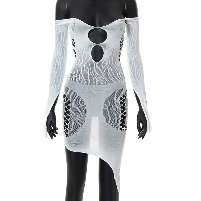 Command attention and own the night with this stunning cutout mesh mini dress designed for those who aren't afraid to be the center of attention.