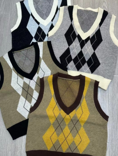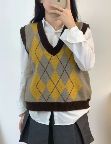 - ✨ Jennie-Inspired Fashion – Chic K-pop style knitted vest featuring a flattering V-neck design and modern geometric diamond pattern for effortless elegance