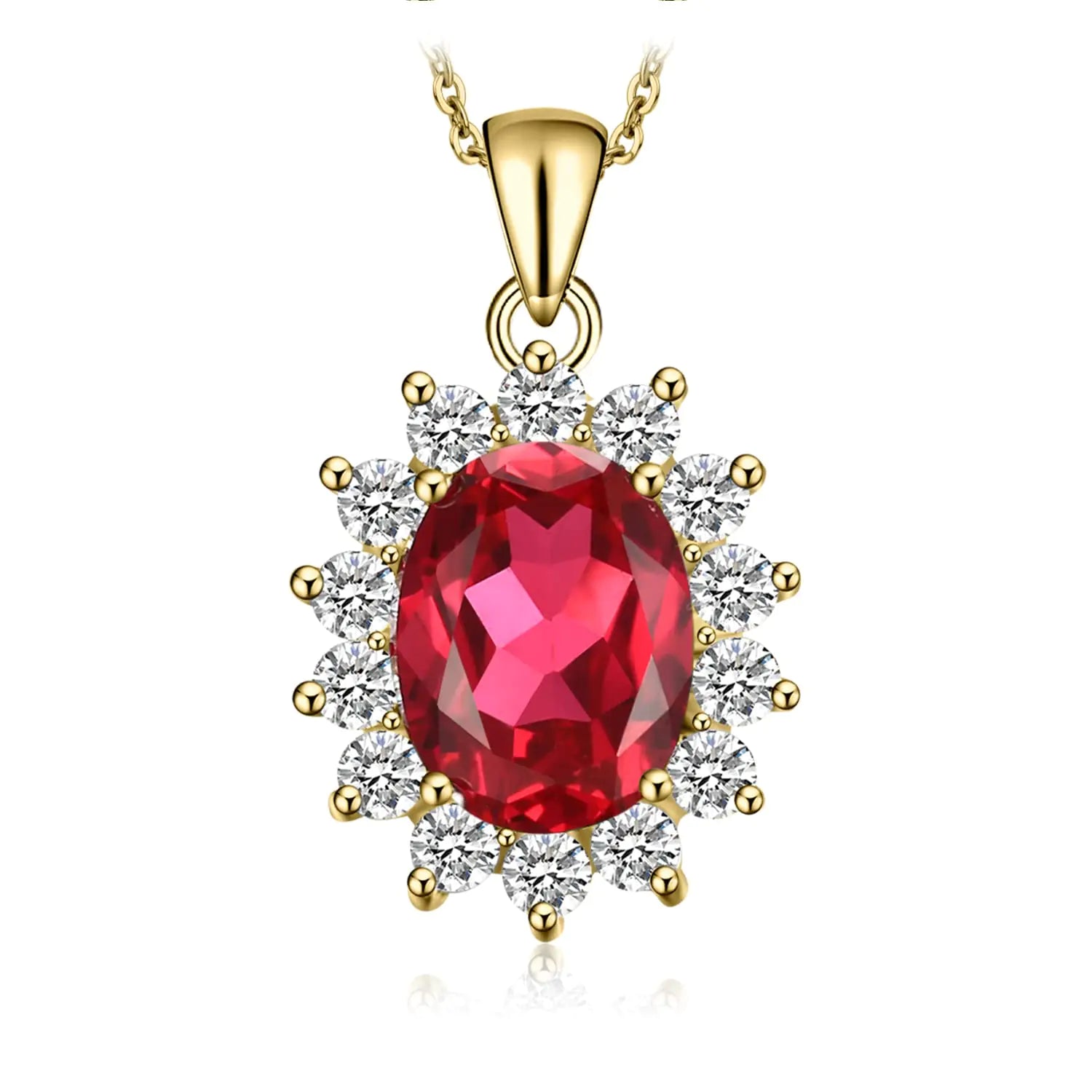 JewelryPalace Princess Diana Kate Middleton Gemstone Birthstone Oval 3.2ct Created Red Ruby Pendant Necklace for Women 14k Yellow Gold Plated 925 Sterling Silver Necklaces for Her 18 Inches chain (Copy)